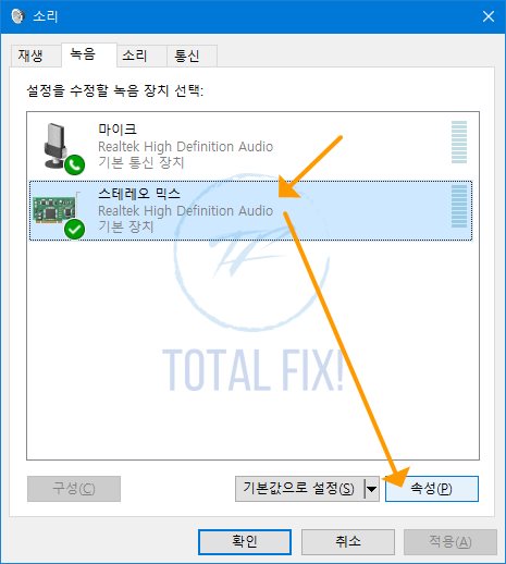 7. 스테레오 믹스를 선택 후 속성을 클릭합니다.
