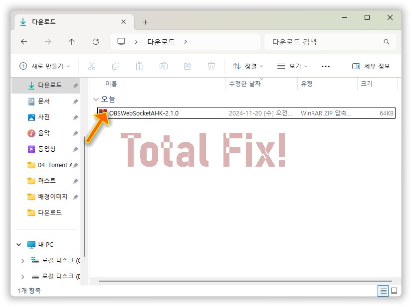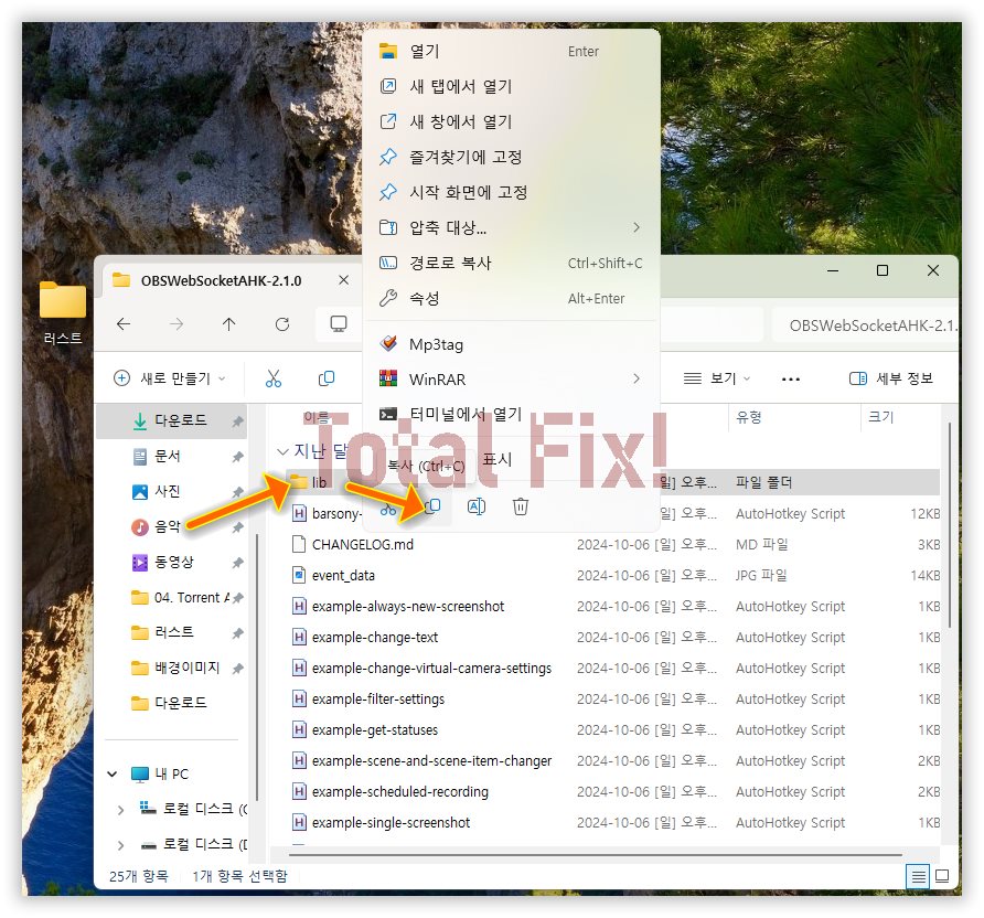 다운 받은 OBSWebsocketAHK 압축 파일의 압축을 풀어 줍니다.