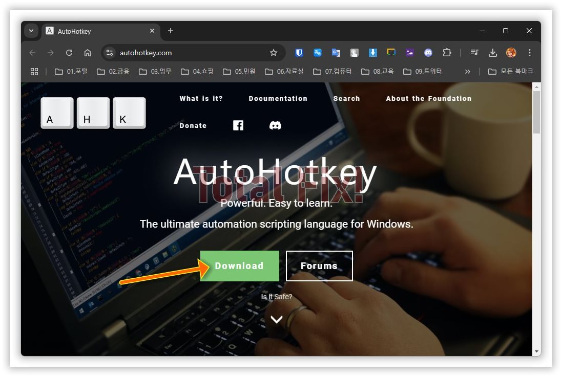 이제 AutoHotKey를 설치 하기 위하여 https://www.autohotkey.com/에 붕문 하여 프로그램을 다운받고 설치 합니다.