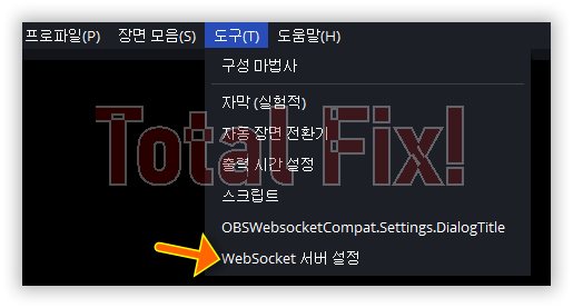 OBS에서 도구 > Websocket 서버 설정을 클릭하여 실행 합니다.