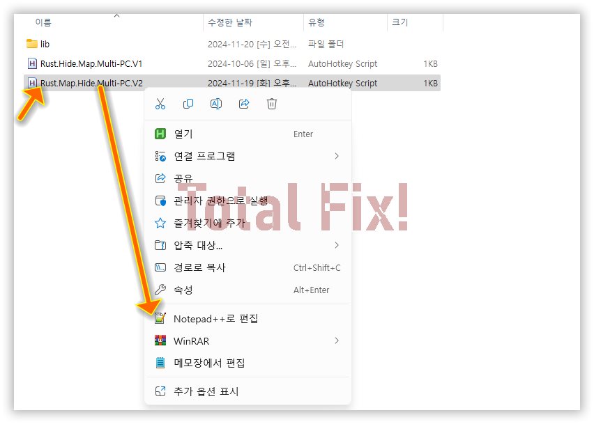 이번에는 러스트 2PC(게임컴과 송출컴이 분리된 환경)에서의 맵 가리개 AutoHotKey 버전의 사용법을 알려 드리겠습니다.